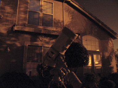 The scenes below were taken around 11PM in mid-January. The backyard is bathed in the light of nearby streetlights. Access to the southwest and western sky is blocked by my home.